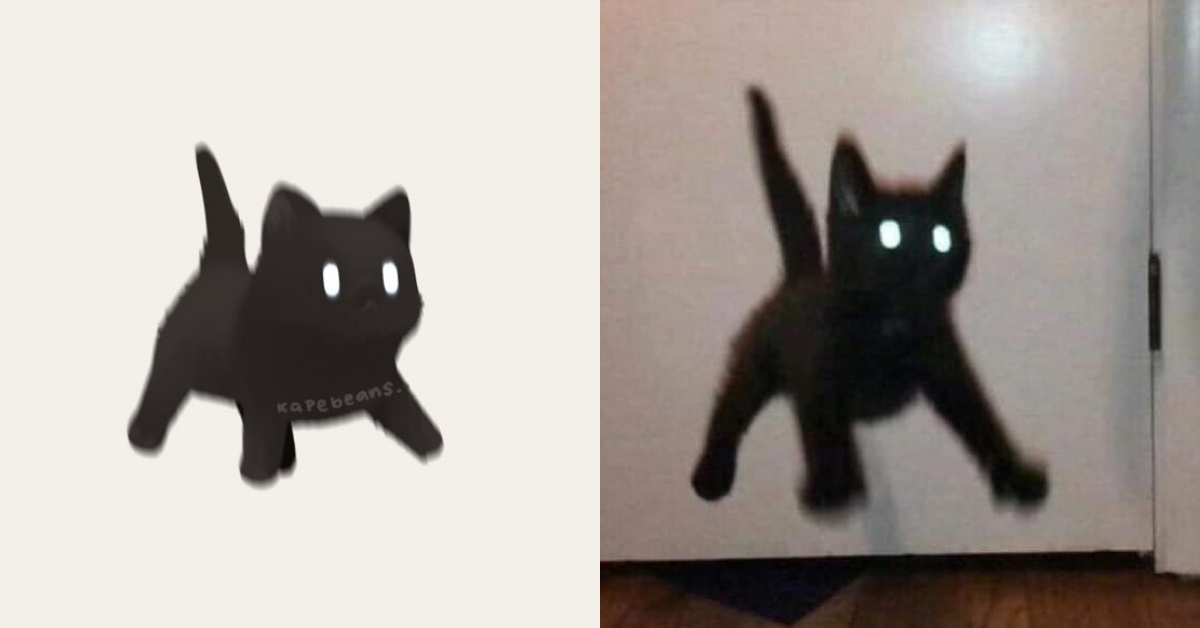 被周遭動靜嚇到的小黑貓,反光眼睛加上震驚到模糊的身影根本是外星生物,在插畫家的筆下增加了一點呆萌感!