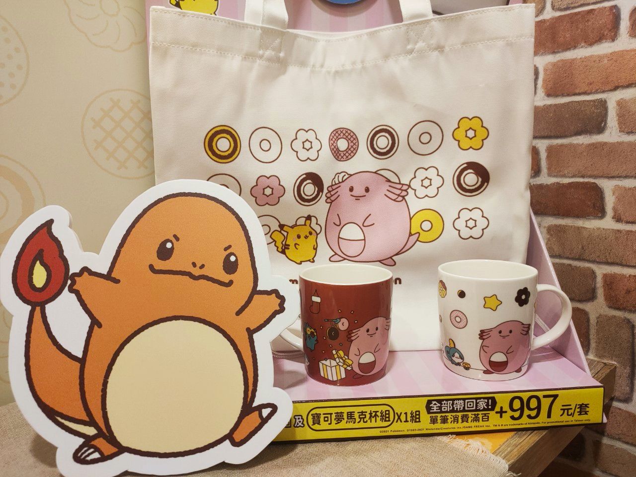 活動也推出了實用又可愛的週邊商品,「寶可夢手提袋」有皮卡丘和吉利蛋和甜甜圈兩款,「寶可夢馬克杯」則是有一紅一白兩組,不論是當作情侶對杯、好友送禮都非常合適,只要消費滿100元就可以加價購啦!