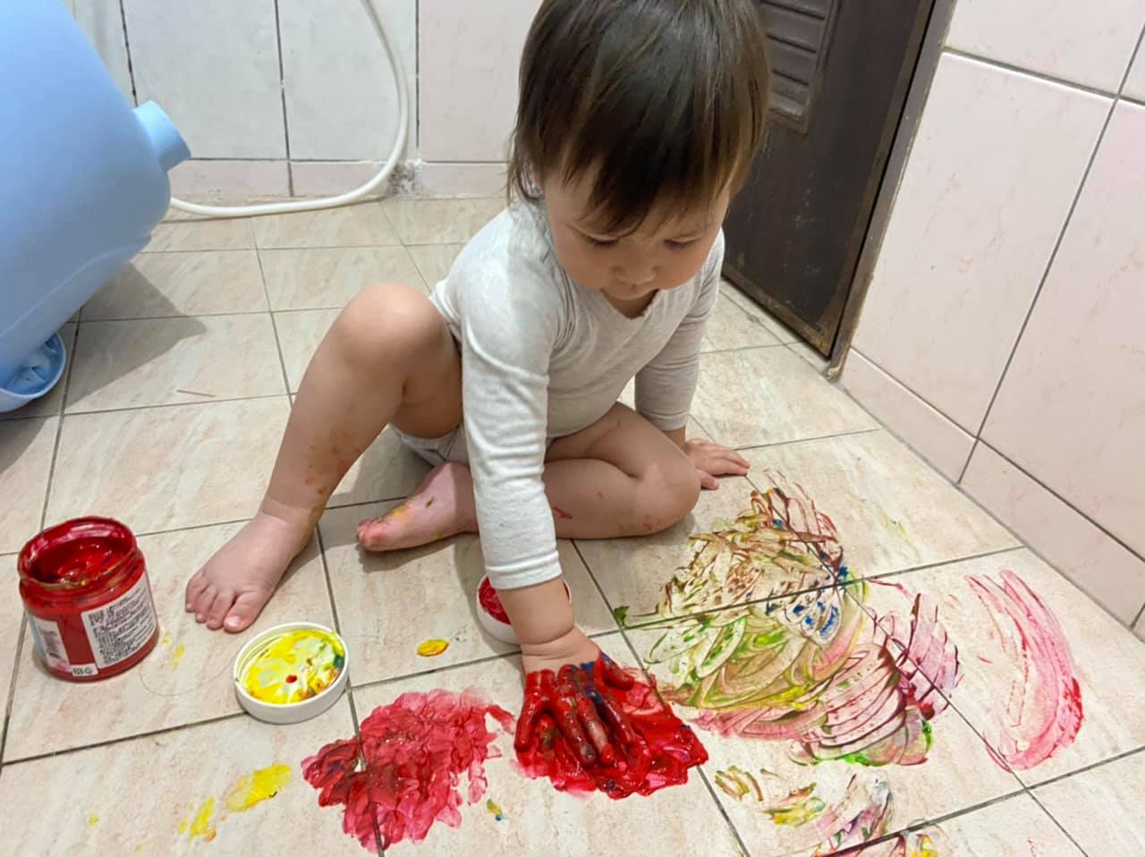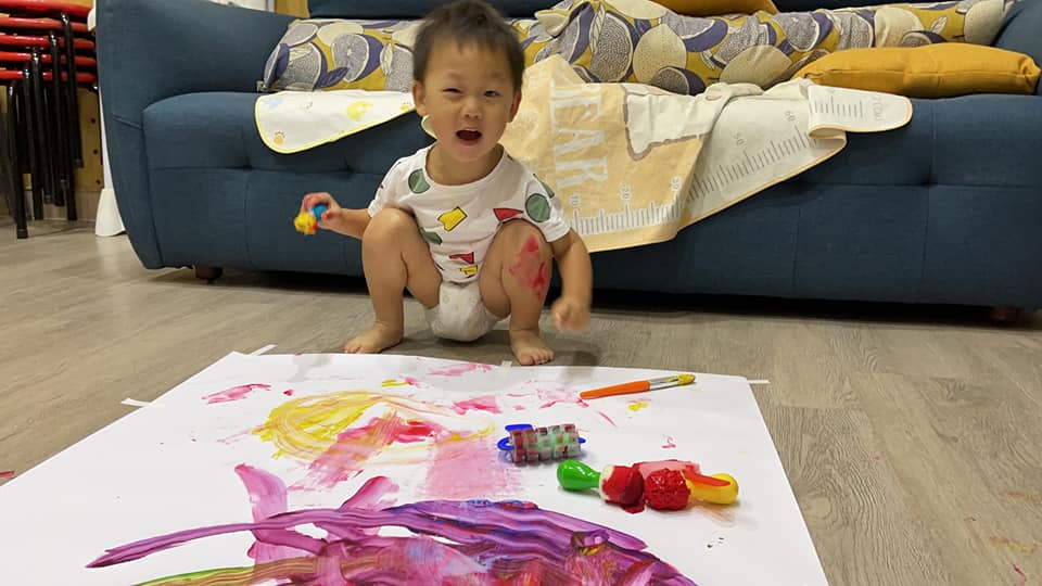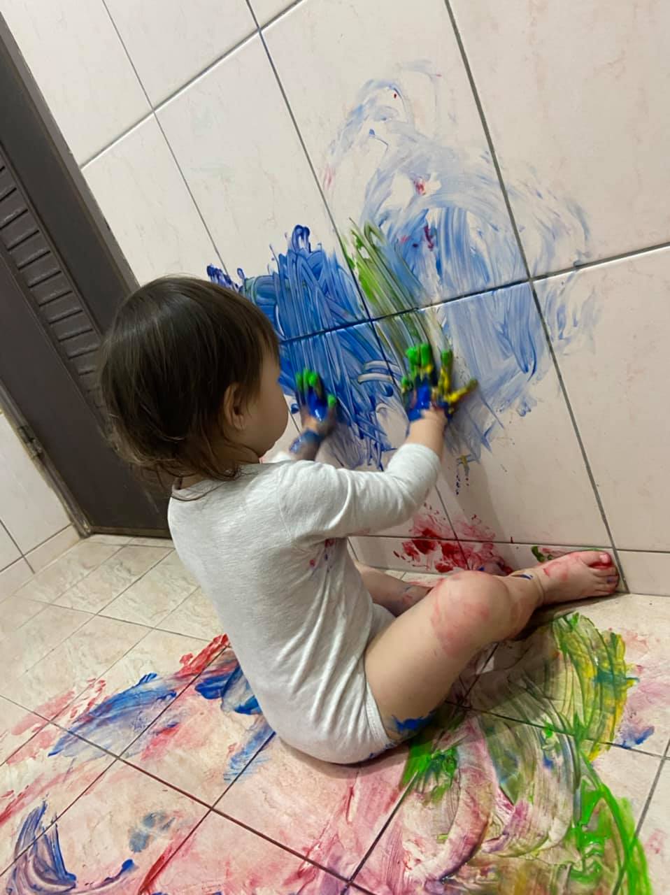 最後的最後,媽咪們一定要有強大、並充滿耐心的心!有些媽媽怕小孩弄得到處都是,會限制孩子很多東西:例如一定要拿水彩筆、一定要用什麼顏色、一定要畫在哪些範圍,小孩如果沒有照做就會氣得大罵,因為增加事後清理的難度。不過小朋友畫畫勢必會弄得到處都是,加上五顏六色的顏料會讓整體看起來更可怕,但這就是揮發創意的過程,不是嗎?(已經可以想像媽媽咬牙、控制表情,努力強顏歡笑陪小孩玩)
