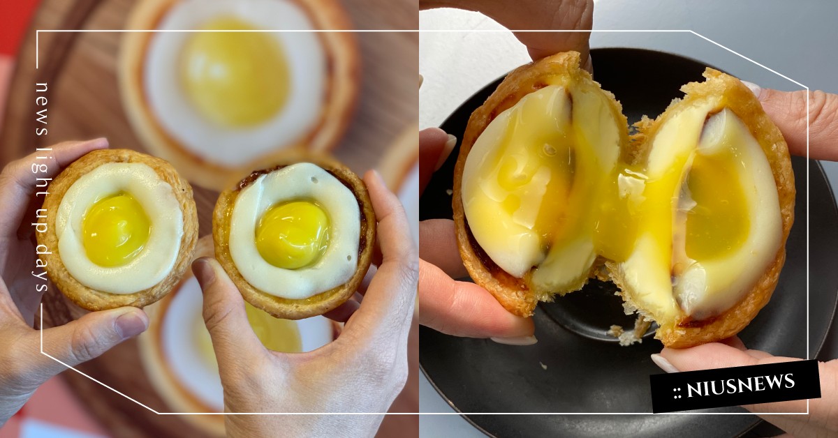 「日光檸檬蛋撻」概念來自於法式經典檸檬塔,基底為手作163層酥脆撻皮,內餡嚴選比利時進口檸檬醬,最上層擠上一圈檸檬奶油霜進行點綴,外觀不僅宛如荷包蛋造型,從上面俯視還是一顆春日小太陽呢!