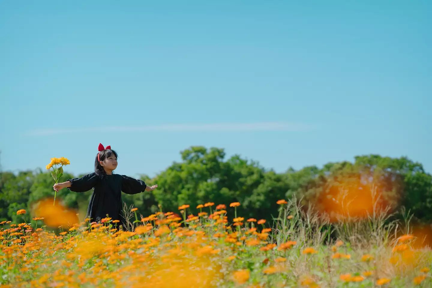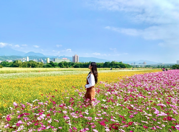 「2021關渡秘境花海」今年擴大升級!超大片的彩色花田通通免費拍,整個八仙抽水站周邊佈滿了粉色、橘黃色等波斯菊,另外還有還有百日草、向日葵等花卉,現場還設置了可愛的麋鹿和裝置藝術讓妞妞們當做拍攝道具,繽紛花色滿開時更顯耀眼,還能用社子大橋、大屯山、七星山等當背景,翠綠山巒搭配藍天白雲的畫面簡直太唯美。