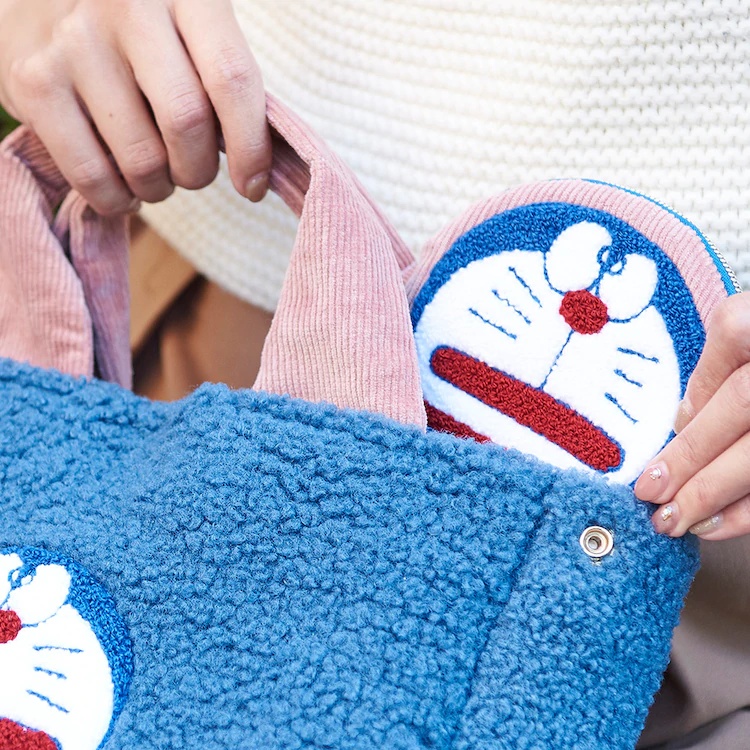 第二款週邊則是做為外出袋或是便當袋都相當方便的絨毛小包包,以簡約卻帶有些微詼諧風格呈現哆啦A夢不為人知的一面,不僅很適合秋冬搭配,還可以展現出他獨特的性格。
