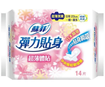 1. 蘇菲清爽淨肌超薄潔翼日用(23cm)