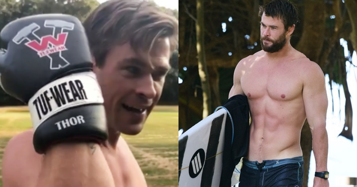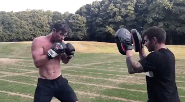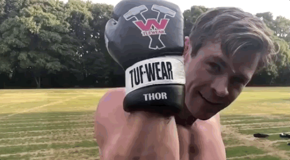在這段練拳的影片中我們還可以看到克里斯漢斯沃興奮的跟鏡頭分享專屬的「THOR」拳擊手套,超近距離的狙擊鏡頭讓妞編輯看了也一陣臉紅紅!