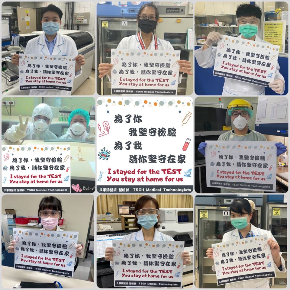三總的「醫檢師」也響應這項宣導,隨著新冠肺炎的案例不斷攀升,可以讓更多人認識這群在醫生背後,默默分析著檢驗結果的重要人物。當他們穿上工作服、防水隔離衣、N95口罩、面罩再戴上兩層手套,穿上就是4~5個小時不能脫,休息再換上新的一套,工作期間不斷接觸大量的「嚴重特殊性傳染性肺炎」咽喉棉棒、痰液檢體,非常辛苦!(妞編輯打到這邊都快流下感動的眼淚)