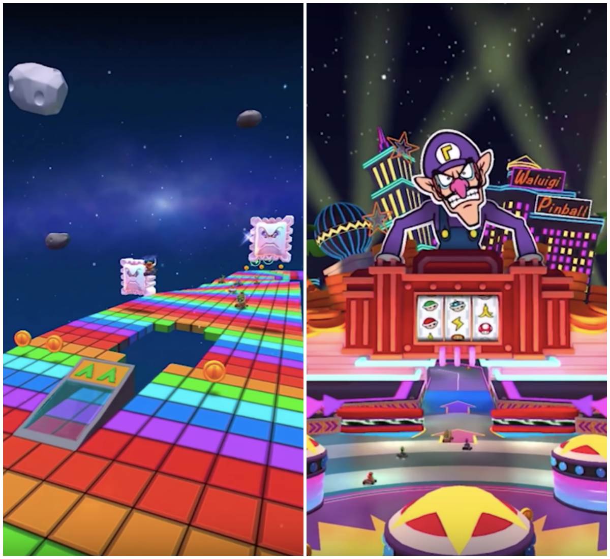 世界城市賽道包括日本、巴黎等地,玩家將能在尬車途中看到聞名世界的經典地標,例如東京淺草寺、巴黎艾菲爾鐵塔、巴黎凱旋門等,遊戲畫面相當精緻,遊玩時就像環遊世界一樣!原作中經典的「彩虹之路」與「庫巴城堡」也將會被收納在遊戲中。