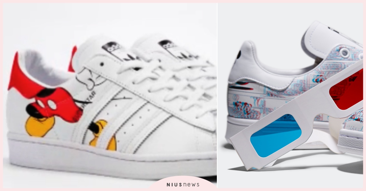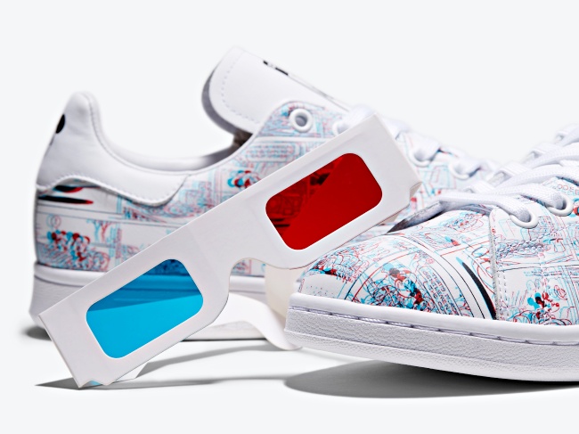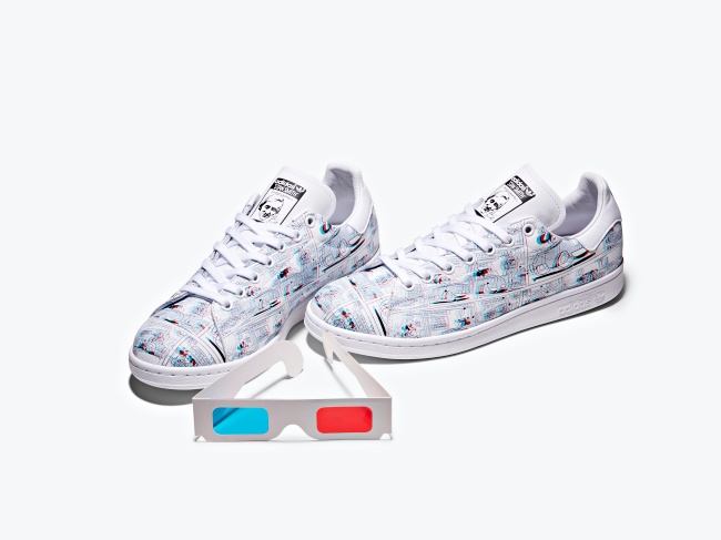 另一款聯名鞋更腦洞大開了(笑)!買鞋直接附贈你3D眼鏡,把整雙白色Stan Smith 3D鞋款直接變身米奇經典漫畫,以極具突破性的3D立體技術印製,破格把漫畫細細印滿整個鞋面,不只是穿搭神隊友,還是真的能閱讀的「漫畫鞋」,收藏價值十足~