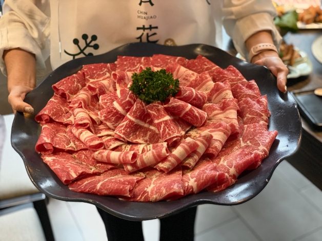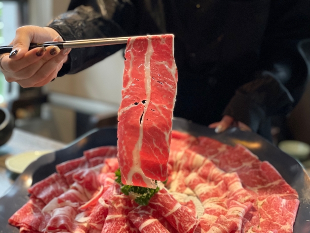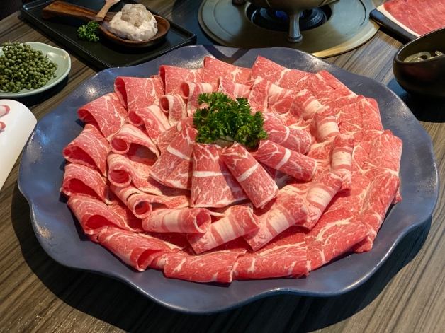 人氣肉品和海鮮擇一,其一為擁有美國牛小排、美國雪花牛和美國牛梅花「牛三拼盛宴」,開花狀似的擺盤上桌相機先食,肥瘦均勻分佈,簡單下鍋涮五秒即可享用;其二為海鮮依照季節微調的「仙氣海宴」,牛三拼盛宴也可加價200元升級為「仙氣頂級牛三拼盛宴」,內含極上和牛霜降、安格斯低脂牛和雪花牛!