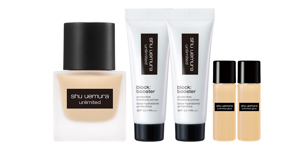 組合內容:無極限粉底 (正貨自選色)、無極限保濕妝前乳 透色10ml x2、無極限超時輕粉底 664 5ml x2