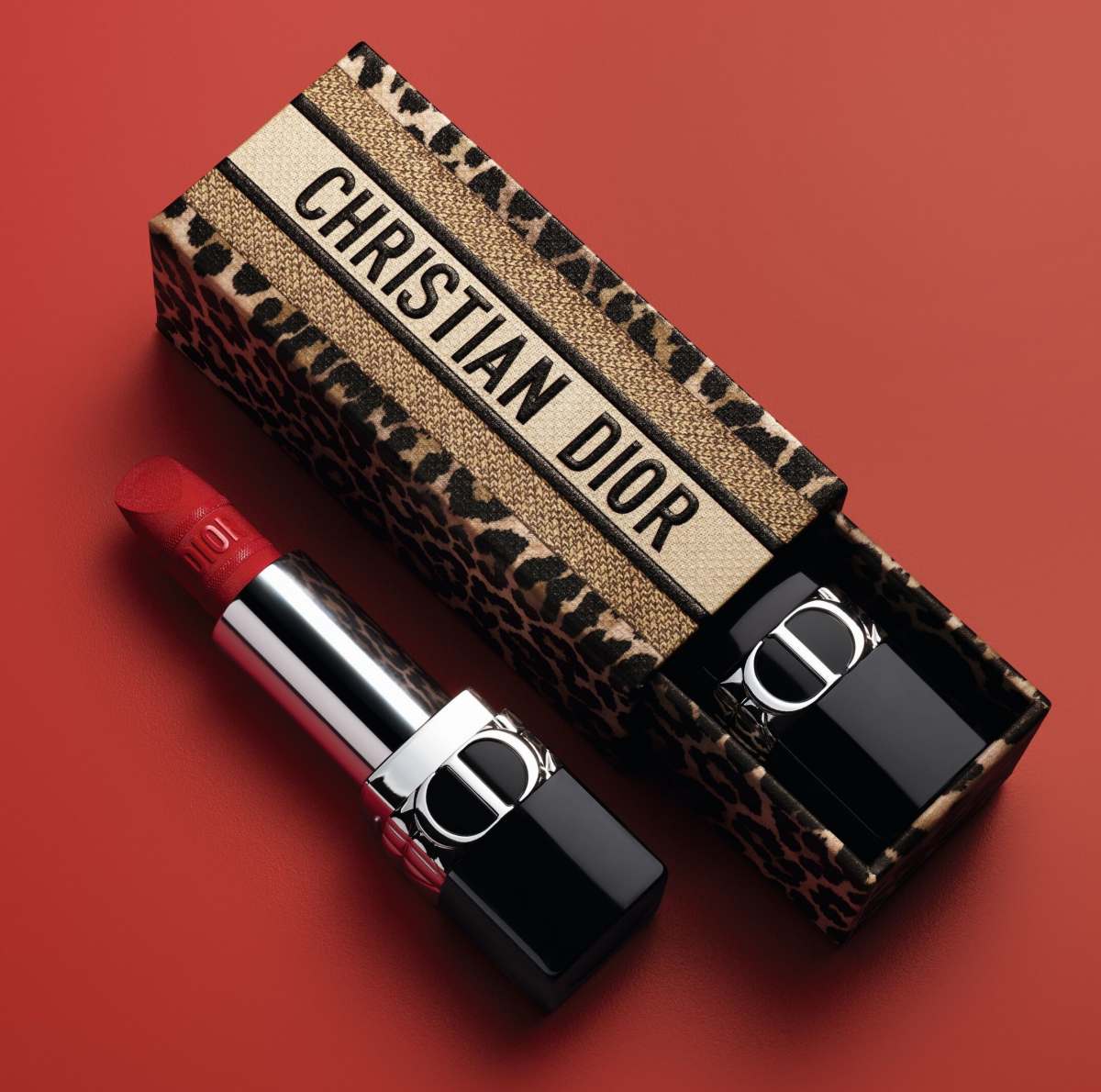 迪奧最經典的《迪奧藍星唇膏》,這次也推出豹紋限量版,膏體轉出來蕊心刻印經典「DIOR」圖騰,搭配精美高訂豹紋圖騰的時尚外盒-《迪奧藍星唇膏外盒豹紋限量版》,適合收藏,也適合送禮。共推出共 4 種質地:絲絨特霧、經典緞光、摩登柔霧到迷幻金屬,色調包含裸棕色、玫瑰豆沙色到迷人勃根地紅,經典的#999正紅也在這次的系列中。