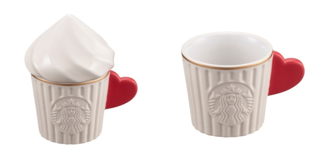 「甜心滋味馬克杯組」外觀宛如杯子蛋糕和鮮奶油,手把的部分更用大大的愛心作為造型,純白色的底色搭配金色邊框超有質感,而「心心相愛馬克杯」如其名,全部以滿版愛心為設計概念,不過杯底處可是有小心機「大大的紅色愛心」呢!
