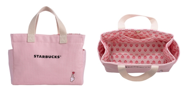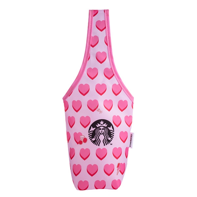 除了上述的杯款之外,這次星巴克也推出兩款提袋,分別為「心心相愛隨行杯袋」和「心心相印粉色提袋」,心心相愛隨行杯袋含提把有34公分,心心相印粉色提袋外觀顏色為淡粉色,右下角有小小的手指愛心,不過一打開則有滿滿的愛心,而星巴克小熊趁著情人節也化身「愛神邱比特」了呢!