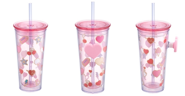 「愛心櫻桃不鏽鋼杯」和「愛心櫻桃冷水壺」主打可口垂涎的紅色櫻桃,給人一種繽紛又甜美感,而「情人物語不鏽鋼杯」、「情人物語不鏽鋼TOGO冷水杯」、「情人物語不鏽鋼水瓶」和「情人物語隨行杯」則除了愛心和櫻桃之外,還可見手指愛心、邱比特射箭等圖案,象徵愛情的甜蜜幸福!