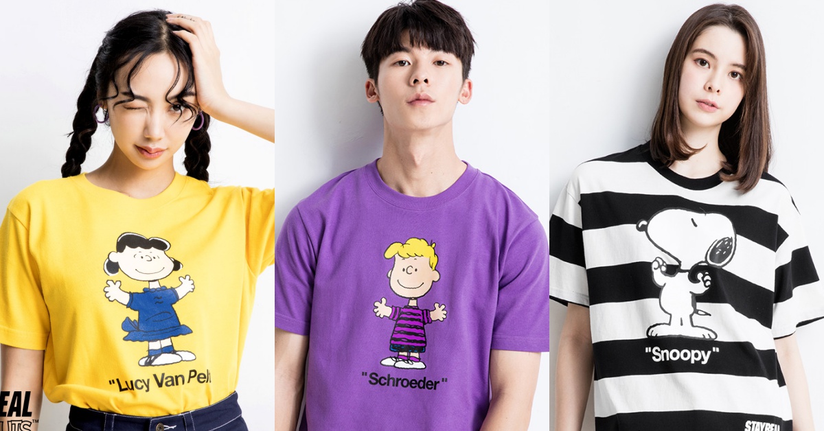 STAYREAL聯名系列第二彈找來史努比的4位超人氣好友—露西(Lucy)、查理•布朗(Charlie Brown)、佩蒂(Patty)、謝勒德(Schroeder),搭配人物個性設計不同色調的人物T-shirt!