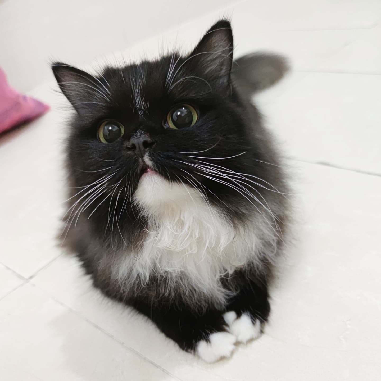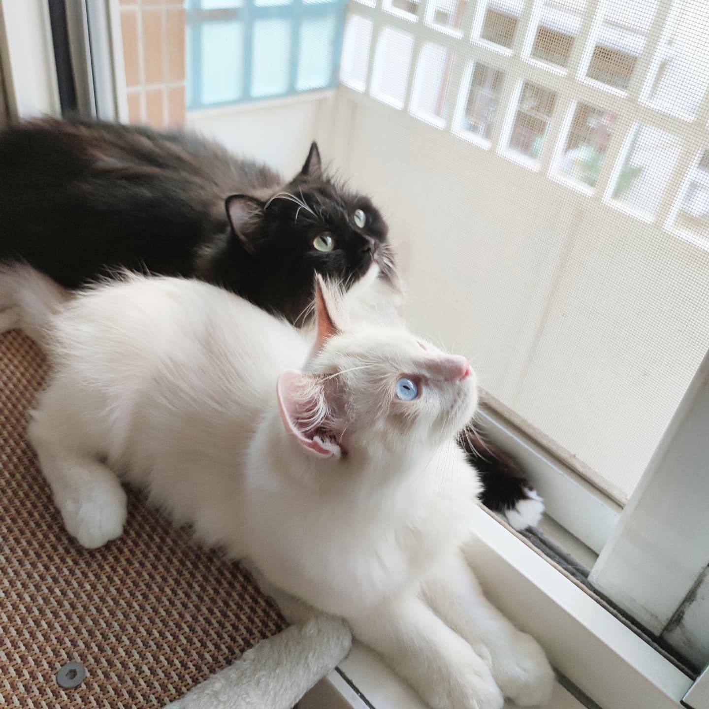 大叔其實是一個月前才加入這個家庭的,剛來的前幾天飼主麻麻有把兩喵隔離,後來才慢慢嘗試讓牠們接觸,沒想到剛認識蘿莉就對大叔很友善,會翻肚肚也會想靠近大叔,個性真的很nice,還是說其實是被大叔的外表給煞到了(?)