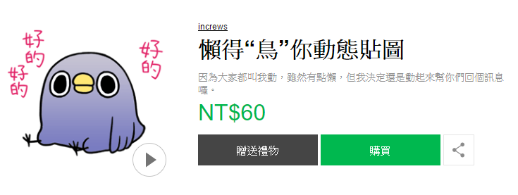 想預覽懶鳥跟直白妹等角色動起來的模樣嗎?有興趣的人請點下列連結:第二彈動態貼圖、第一彈動態貼圖。但別說手機小姐沒警告你,預覽過的人裡面,沒幾個能逃得出懶鳥的手掌心啊啊啊!