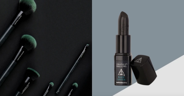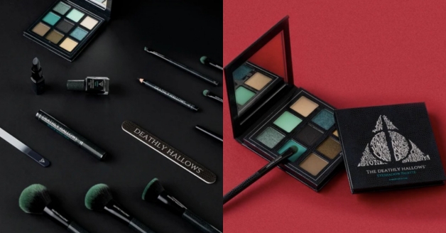 由接骨木魔杖、重生石和隱形斗篷三項魔法物品組成的「死神聖物」,品項包含刷具組、眼影盤、眼線筆、睫毛膏、唇膏、指甲油和指甲銼等,主色調走一個暗黑色系,不管是唇膏還是指甲油通通都是,特別的是眼影盤的正面還有死神聖物的經典logo!