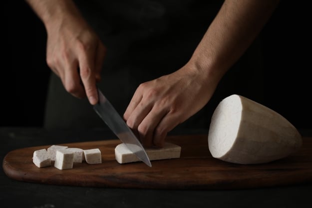 「芋香珍珠鮮奶綠」這麼好喝的最大功臣,肯定是那受到化骨綿掌淬煉的芋頭囉!嚴選台灣優質農產品,以經驗精準切分為一口尺寸,這時職人還要注意別切得太小塊,不然可是會容易變成沙狀或泥狀而失去口感……以上種種考量也只有職人才能如此精準的拿捏!另外更需掌握火侯、經半小時以上細細燜煮後才能靜置放涼,讓芋頭變得鬆而不散且帶有濃濃芋香,如此費時、費工,最終只為讓芋頭控們喝到這杯最銷魂的享受。