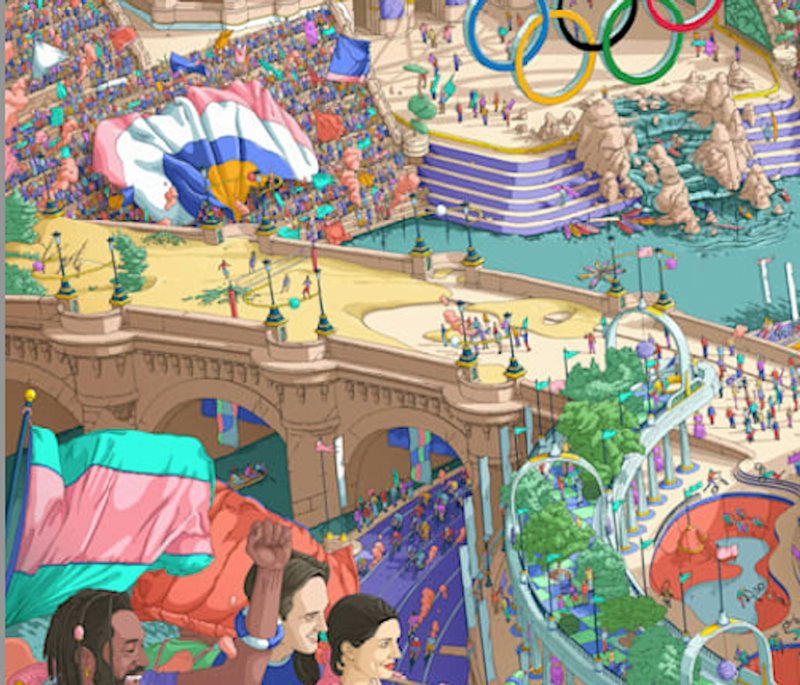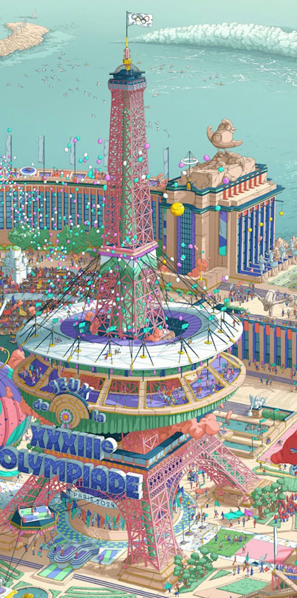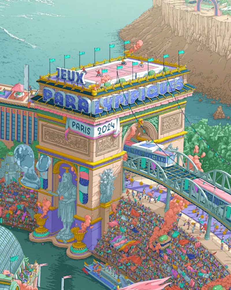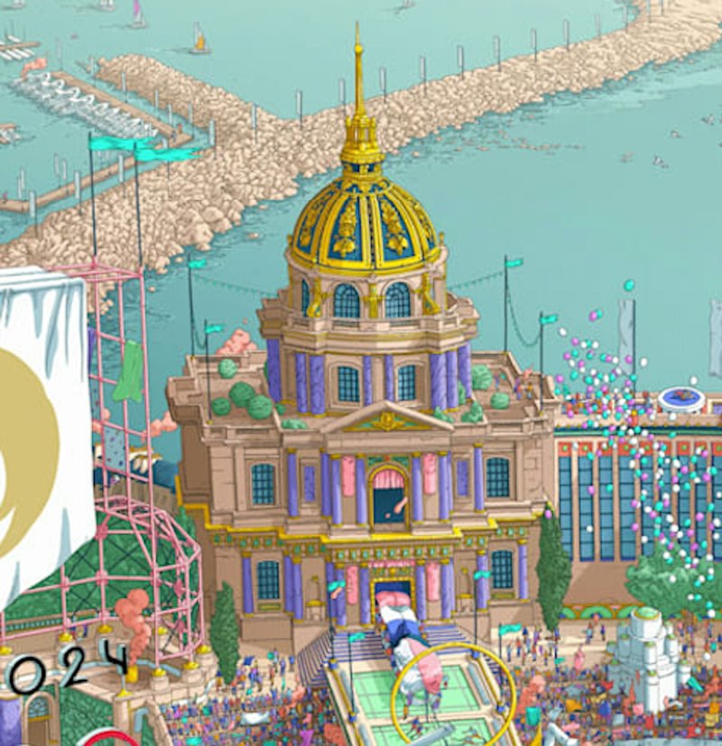 法國著名插畫家Ugo Gattoni作品向來複雜精緻,藏有多個細節,曾與愛馬仕、卡地亞等多個大牌合作。這次巴黎奧運會以及殘奧會海報色彩夢幻,使用「雙聯畫」設計,兩張海報可以獨立觀看,也可以合拼成一張連貫作品,包含數千個細節。Gattoni表示兩張海報總共投入超過2000小時,即若六個月密集工作才得以完成,那麼兩張海報有什麼值得特別留意之處?