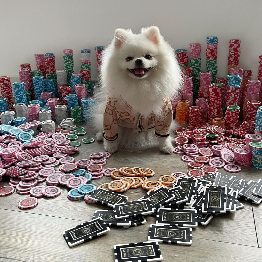 來自英國倫敦騎士橋(Knightsbridge)的這隻博美名叫Milla,牠每天的生活都圍繞著精品、奢華&高貴,像是上面兩張照片,不僅繫上HERMÈS的絲巾還穿著Gucci的針織衫坐在上百萬的籌碼之中,看著牠開心的表情,妞編輯可是開心不起來⋯⋯(過得不如狗原來是這種感覺)(誤)