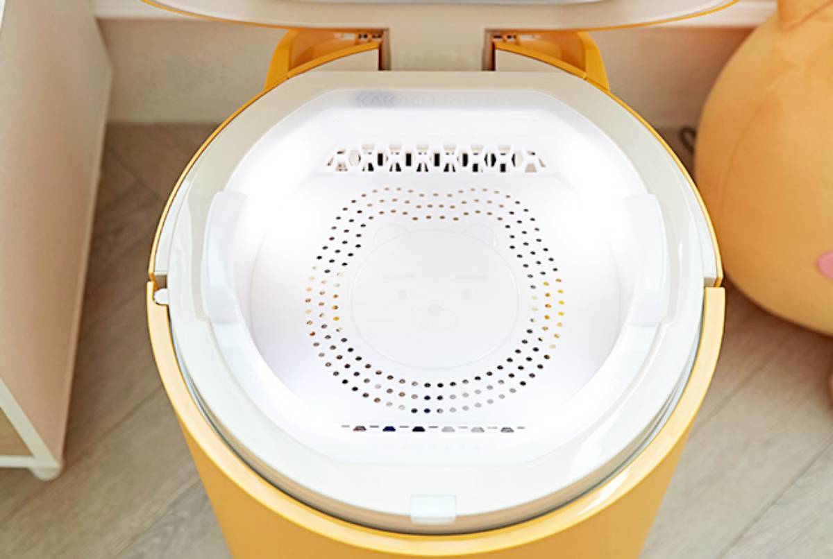 這款小冰箱從外型到內部都可愛,上層還藏著萊恩的臉龐!(笑)而這裡除了冷藏食品之外,還可卸下隔板,安裝加購的紫外線殺菌器,放入手機、手錶、化妝品等物品,靜置5分鐘消毒。