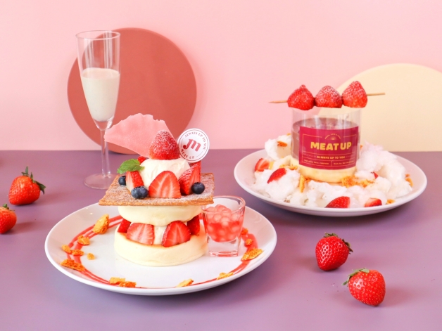 「杏桃鬆餅屋」為草莓控帶來限定的莓好物語系列,以苗栗山上高海拔栽植的新鮮草莓為主體,搭配草莓奶霜,打造厚實細緻的「漫步雪莓厚鬆餅」,另一道口感較有彈性的薄鬆餅「草莓戀人冰淇淋鬆餅」,則以草莓冰淇淋與滿滿草莓、北海道鮮乳奶霜呈現清爽滋味。