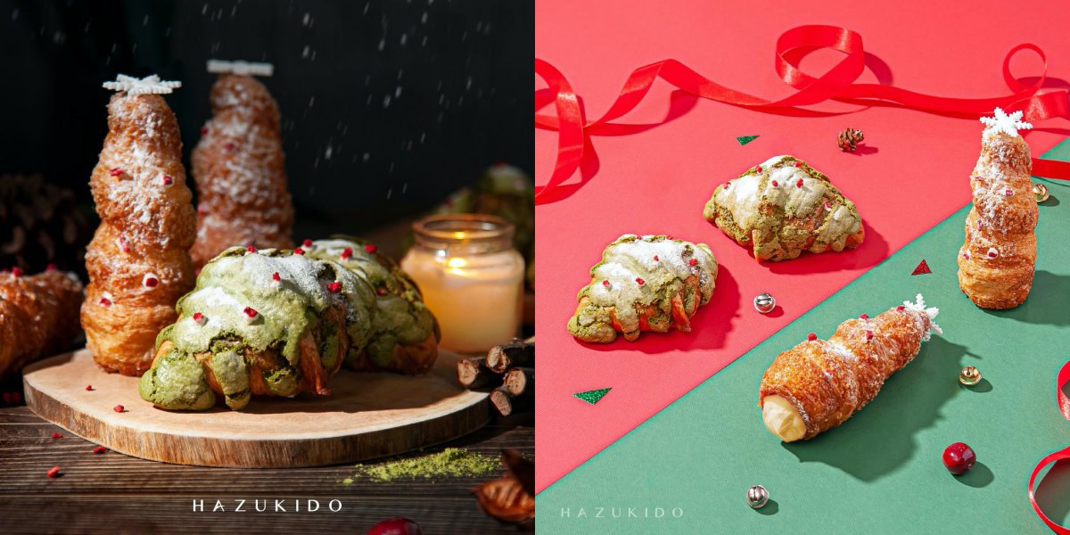「八月堂」於今年聖誕節再推出兩款全新限定新品,首先是將經典蜂巢可頌再裹上一層由日本進口抹茶粉製成的「聖誕綠馬卡龍可頌」,及化身為聖誕塔,灌入卡士達醬與新鮮草莓的「雪花聖誕可頌塔」, 同時「八月堂」於聖誕檔期期間推出聖誕限定禮盒,即日起購買可頌享買五送一優惠,喜歡可頌的妞妞還不趕快吃起來!