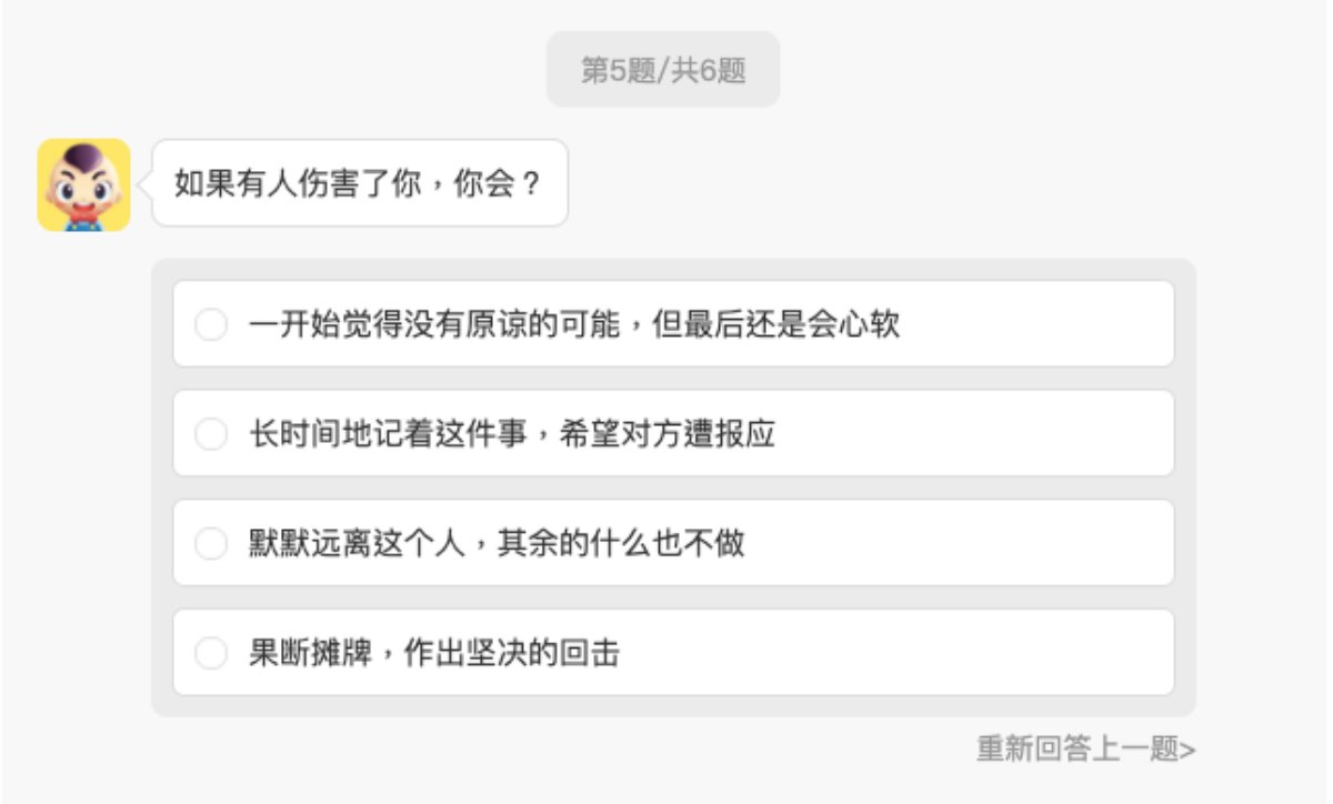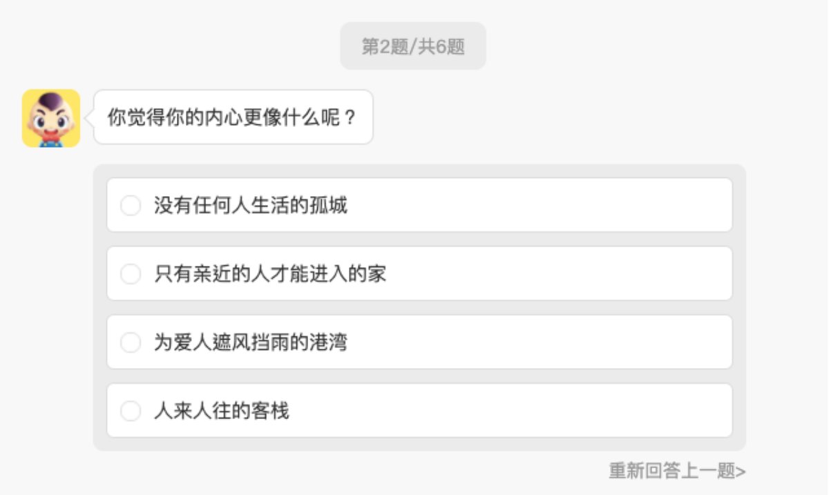 再來將會用不同的角度去剖析自己面對事情的角度,去看看你的內心是小心翼翼地防備著,還是敞開心胸迎接每一段友情呢~等到回答完6個問題,就會出現屬於你的測驗答案啦!