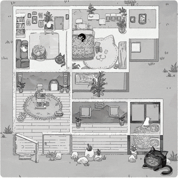 收編回家後,當然就是把房間打造成適合主子居住的樣子,欣賞牠們舔手手、伸懶腰、趴著睡覺等可愛模樣。遊戲內建70種房間與數十種裝飾,完成對應任務就能讓房間變大,藉此領養更多貓咪,還能讓朋友與他們的主子來家裡拜訪。
