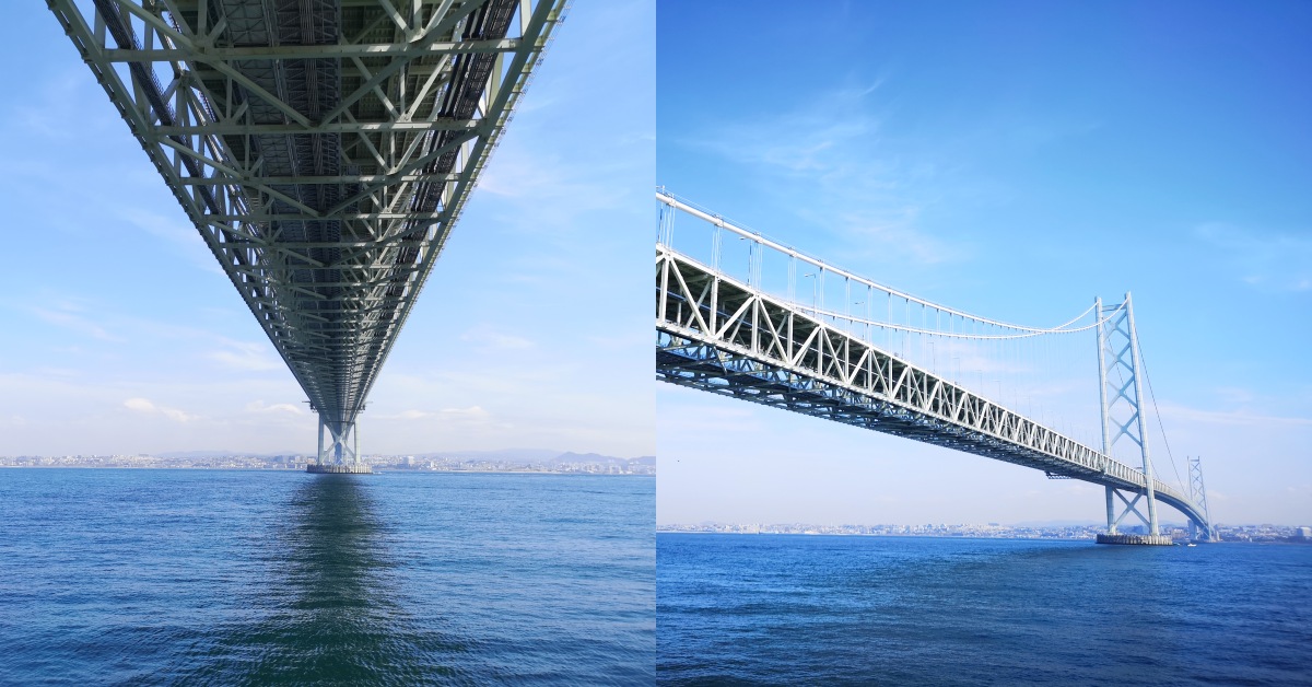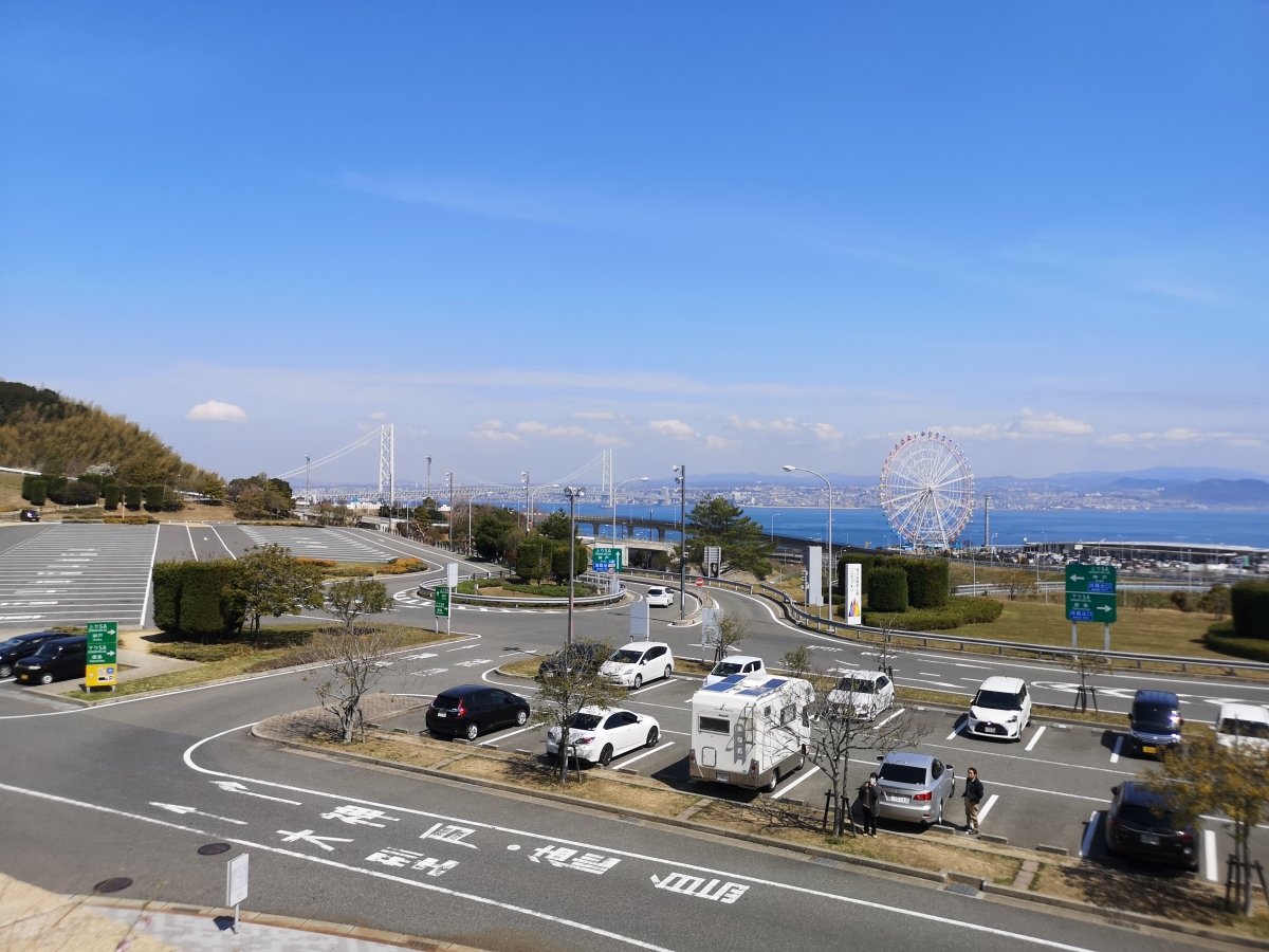 第一個要推薦的景點是位於明石海峽大橋的「淡路休息站(道の駅あわじ)」,這裡不只可以看到世界最長(約3,911m)的吊橋「明石海峡大橋」,附近還有附設餐館商店可以稍作歇息。