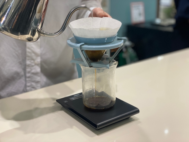 為歡慶猿田彥珈琲誠品生活松菸店全新開幕,還特別推出獨家「日曬藝妓豆」和「卓越盃冠軍豆」等手沖咖啡,咖啡豆使用2019年和2020年的冠軍咖啡豆,其中今年的冠軍豆聞起來帶點茉莉花香的質調,另外,就連手沖架都是「猿田彥限定灰藍色調」呢!
