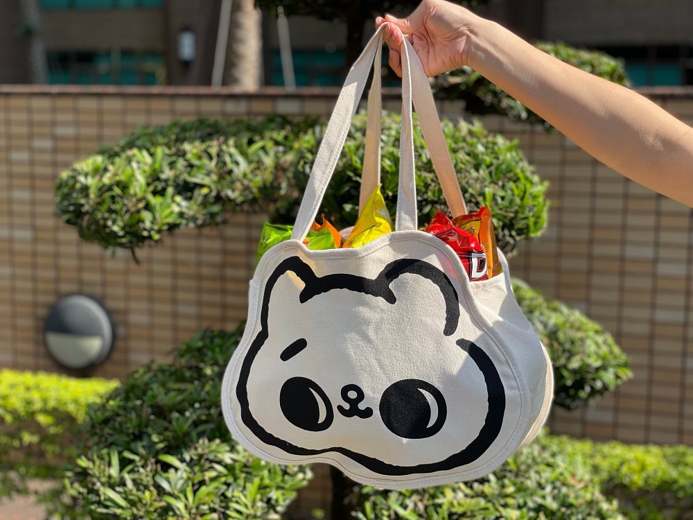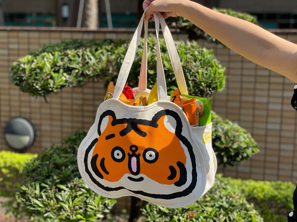 同場還有「爽爽貓×小勞撫」聯名樂事的歡樂組合包!內含零嘴、收納袋與坐墊,袋子採雙面圖案設計,一面是「爽爽貓」,另一面為「小勞撫」,當成隨身包包或購物袋都沒問題。