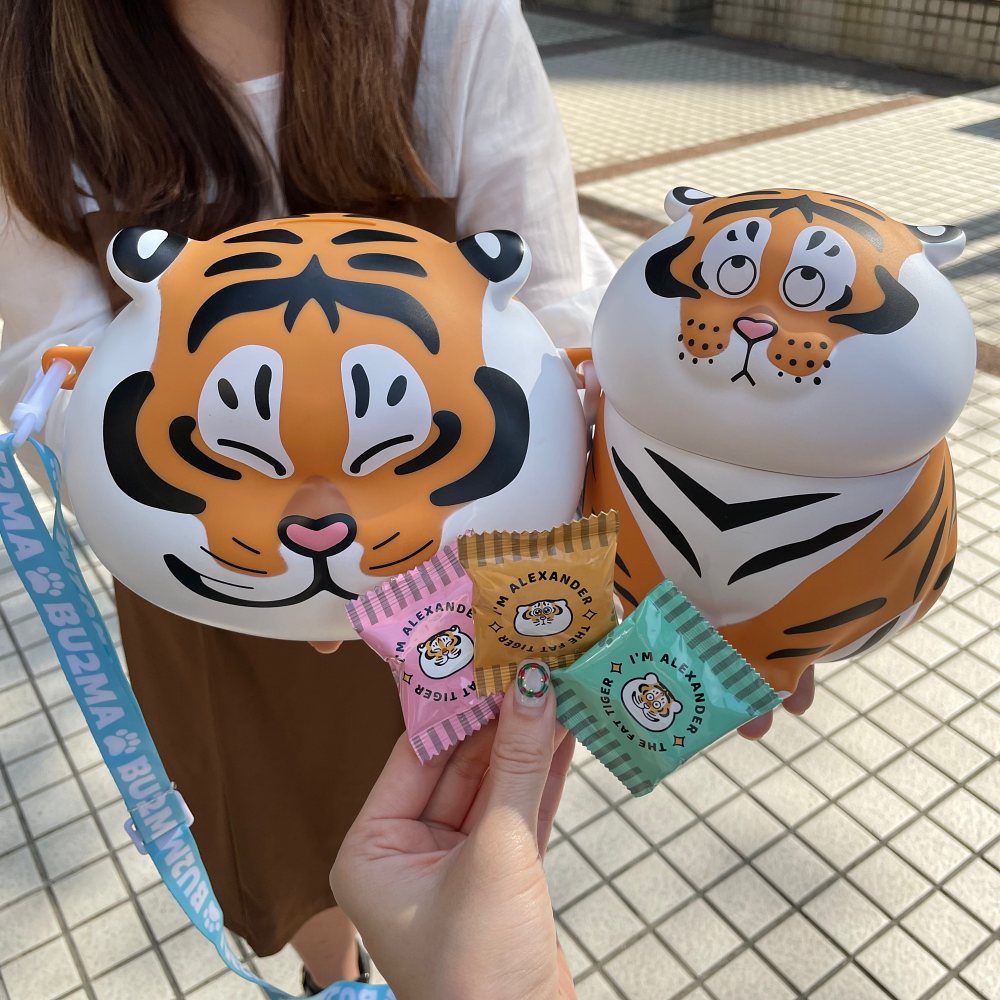 猛虎下山的「胖虎」可愛登場,陪大家迎接農曆虎年!「歡樂側背桶」採萌虎大頭造型,隨附草莓、柑橘、青蘋果3種口味的糖果,揹在身上相當可愛,好適合帶去遊樂園玩;「新春糖果桶」則是以坐著賣萌的胖虎為造型,還能當成「存錢筒」使用。