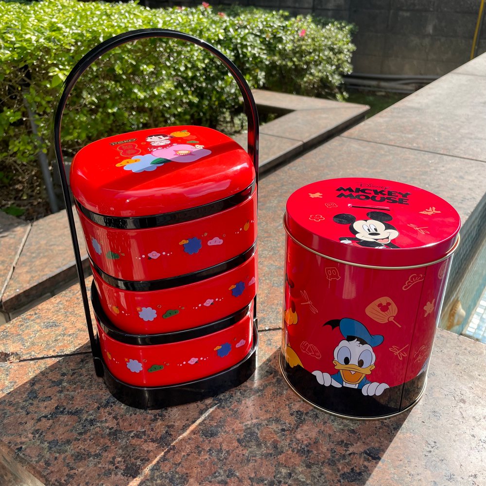 「不二家綜合牛奶糖提籃禮盒」盒子採多層設計,造型散發濃濃過年氛圍,內含原味、草莓、抹茶3種口味的牛奶糖;「日式煎粿綜合罐」則找來迪士尼米奇、唐老鴨、米妮等角色站台,可愛鐵罐超欠收藏。