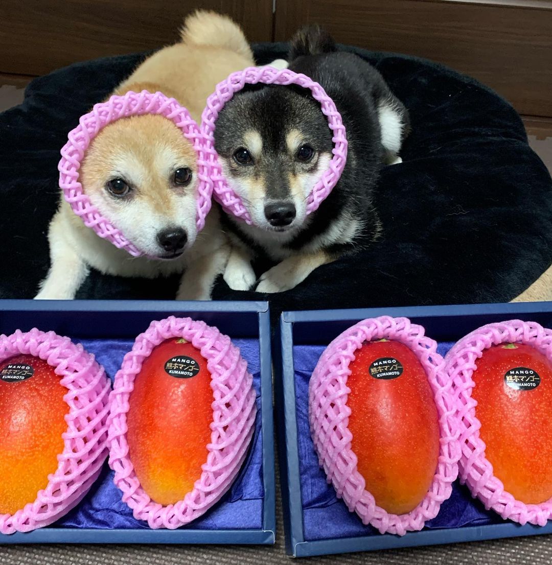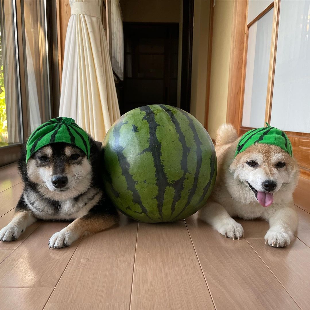 因為年紀、體型相像的關係,主人總是會給牠們穿相似的衣服,真的好像雙胞胎一樣,除了水蜜桃之外,還有西瓜、芒果、櫻桃、鳳梨和蘋果⋯⋯等等,是不是看起來很Juicy、很誘人呢?網友們看了都說:「這代言照拍得很成功~」、「讓水果看起來更好吃了!」、「比較想購入柴柴的部分~」(妞編輯也是)