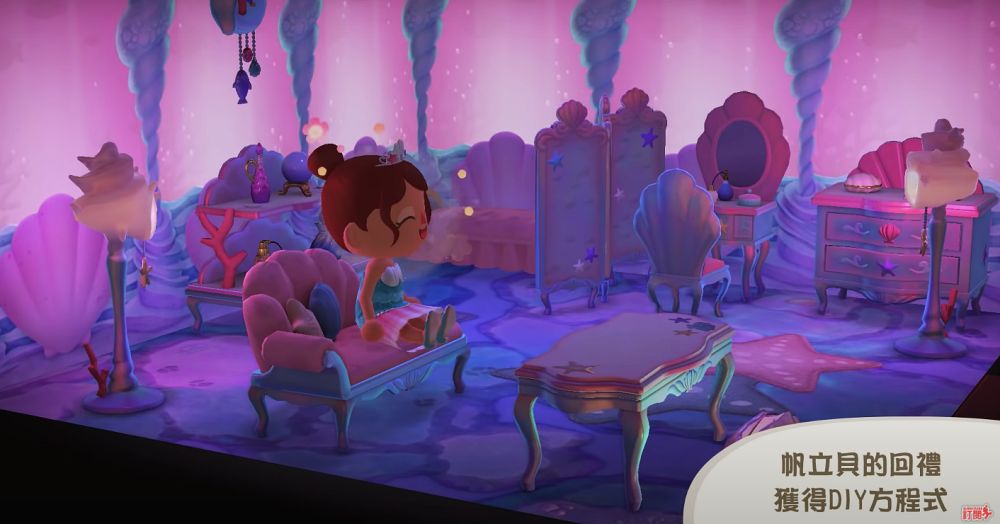這次登場的新角色「阿獺」是隻非常喜歡「帆立貝」的動物,只要將帆立貝送給他,就能得到他的回禮「DIY方程式」,解鎖漂亮又夢幻的「人魚矮櫃」。(只要抓到帆立貝阿獺就會現身,獲得方式並不算太難!)