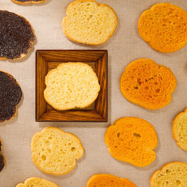 信手工坊的「手工純蛋捲」是伴手禮界的佼佼者,在開業初期,就特別選用產銷履歷認證的雞蛋,製作不加奶油與水的蛋捲 ,也是目前唯一獲得 A. A.Taste Awards 全球純粹風味評鑑二星獎的蛋捲。除此之外,「法式烤片」選用酥脆的法棍切片,再以低溫烘烤的方式,完美呈現濃香奶油與糖的風味,是會讓人一口接一口的涮嘴點心,而「卷卷酥」則是全新推出的商品,能將各國風味與小吃風味一口嚐到。