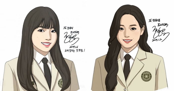 有點可惜的是IZ*ONE並不是真的客串漫畫,而是作者畫出的特別版,他其實早就在幾個月前就在YouTube個人頻道上陸續示範畫出各個成員,昨天終於輪到「宮脇咲良」了!以IZ*ONE出道簡歷照為範本,加入獨特的畫風,甚至讓成員們穿上《青春白卷》的招牌制服,讓網友立刻跪求客串漫畫啦~