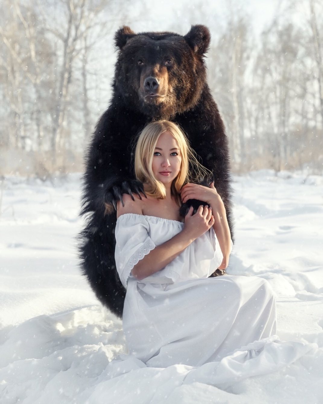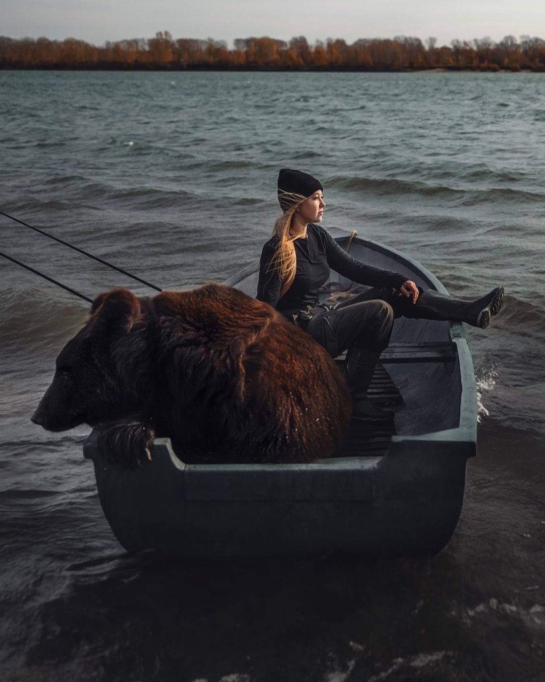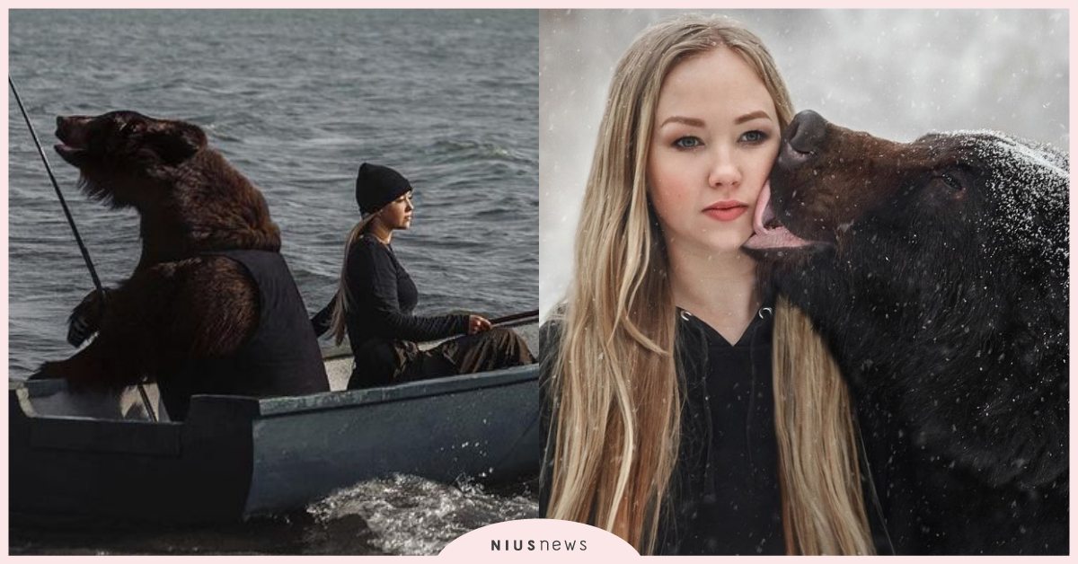 俄羅斯有一名女孩名叫「迪奇卡(Veronika Dichka)」,在2019年時有個動物園關閉,園方決定將動物們野放,她擔心被圈養的棕熊「阿奇(Archie)」無法在大自然中獨立生活,便決定收養牠並一邊帶著牠嘗試各種新事物,阿奇不僅會搭船、使用釣魚竿,還有辦法跟主人一起拍出像是沙龍照的優美照片!