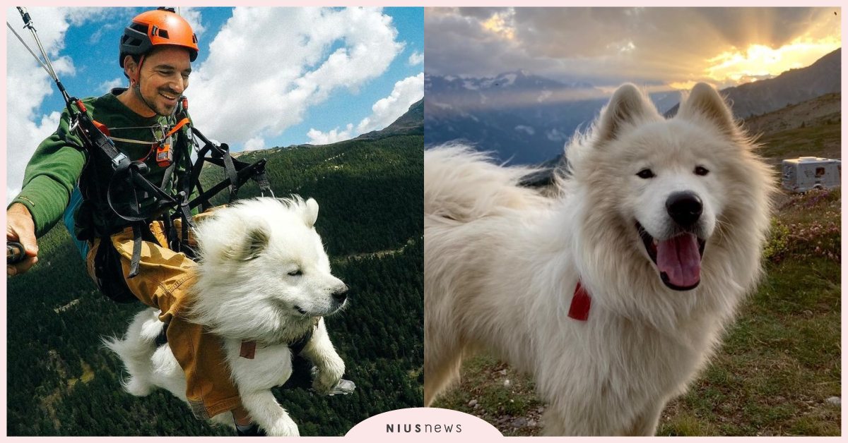 大家都知道狗狗都喜歡郊外踏青,一天沒出門散步就渾身不對勁,但牠們出門頂多跑跑跳跳,不會做一些太刺激的行為。但是今天妞編輯要介紹一隻因為熱愛「飛行傘」而出名的薩摩耶,牠一出門就是要追尋刺激!
