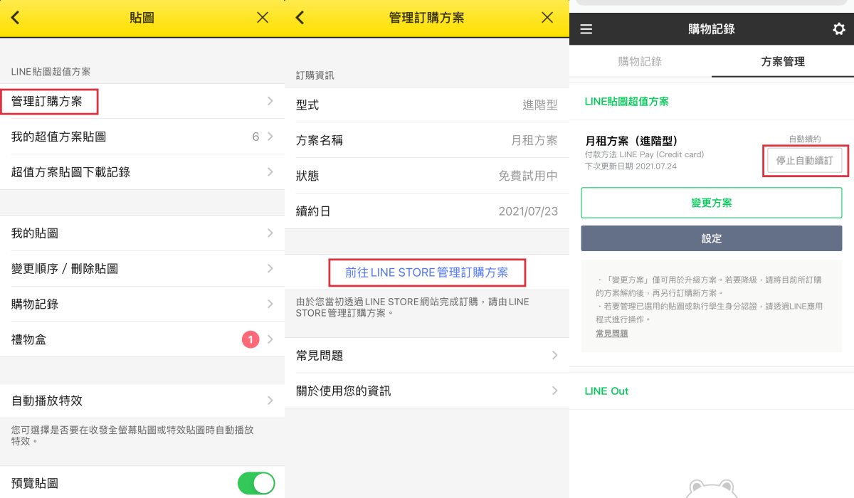 LINE「貼圖用飽飽」採自動續訂制,若之後要取消訂購或改變方案,記得進入「設定-貼圖」,點選「管理訂購方案-前往LINE STORE管理訂購方案」,即可更動服務內容。最後提供貼圖用飽飽頁面(點我)給各位,有興趣的妞妞可前往瞭解更多資訊!