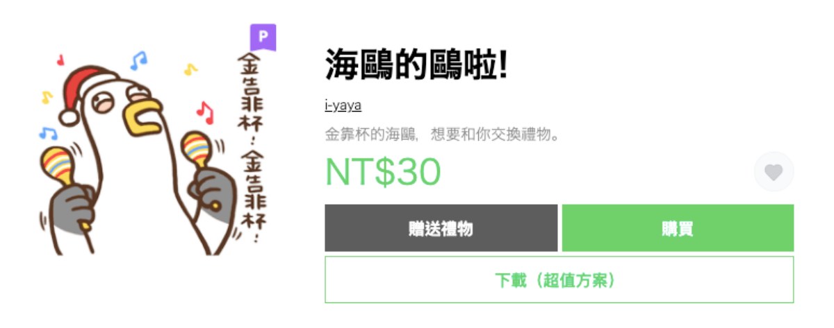 支援用飽飽專案的貼圖會有「下載」按鈕,點按即可將它收進你的貼圖箱。雖然並不是整個貼圖小舖的款式都能任意用(官方貼圖不支援),但指定貼圖超過400萬組,《無所事事小海豹》、《懶散兔與啾先生的OS人生》、《米犬日常》等人氣原創角色都可隨載隨用哦!