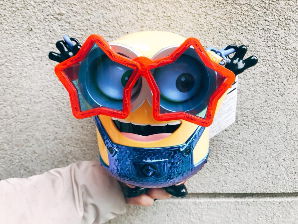 除了剛剛的美戰爆米花桶讓人瞬間少女心燃燒,3月16日同一天也推出了新款的「派對小小兵爆米花桶」!(3,480日幣/個)這款派對小小兵不只俏皮的星星眼鏡可以推上去耍個帥(笑),還有按鈕能三段式變幻發光!小小兵迷只能再抱一隻帶回家了啊~