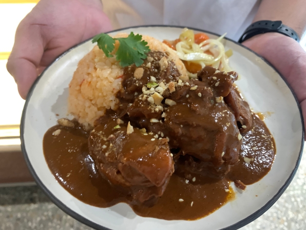 辣巧克力香料鳥肉飯 $350、烤豬三層塔可 $350、墨西哥街吃玉米杯 $150
