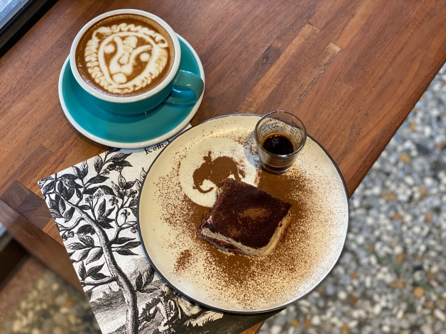 提拉米蘇和拿鐵是這裡的推薦經典套餐,拿鐵以「單品摩卡豆」為基底,有著獨特的巧克力尾韻,也可選擇搭配精選小農「禾香鮮奶」或「瑞典Oatly燕麥奶」;必點的還有外面喝不到的「果醬蘇打冰咖啡」,最底層是店家自製的果醬,搭配蘇打水,最後再倒入一個shot的濃縮咖啡!