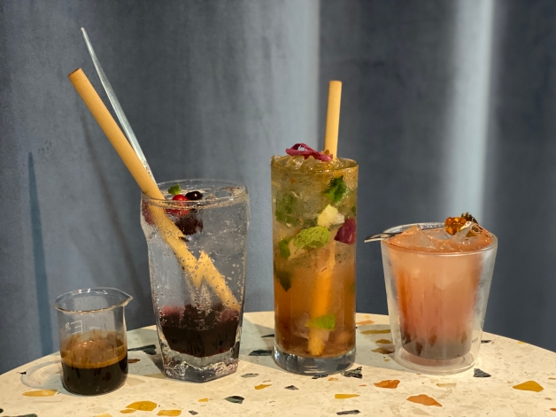 酒類的部分有「莫吉托」、「琴湯尼」、「薄荷朱利普」、「雅柏威士忌」等,其中女孩款為「小熊之死」,靈感來自於亞瑟米勒的《推銷員之死》,以伏特加為基酒,加入自製莓果糖漿和蘇打,最後放上浸泡過伏特加的「小熊軟糖」!