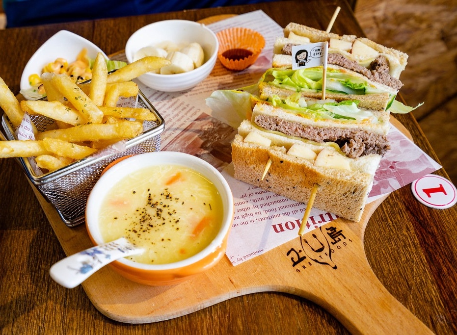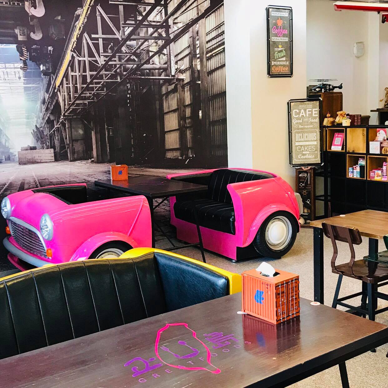 第一站先來到高鐵站附近的人氣早午餐店「正U島」,餐廳的兩大亮點分別是:超可愛的汽車座椅&cp值超高的澎湃早餐。圖中所有餐點是都包含在套餐內,裡面有主菜、水果、沙拉、薯條&濃湯,這樣一份竟然不到200元,是不是很划算!午餐時段還會提供中、泰式料理,喜歡吃麵或米飯的妞妞可以選椒麻雞等菜。整體的裝潢走工業風,每桌的衛生紙盒都做成小小貨櫃的造型,相當可愛。