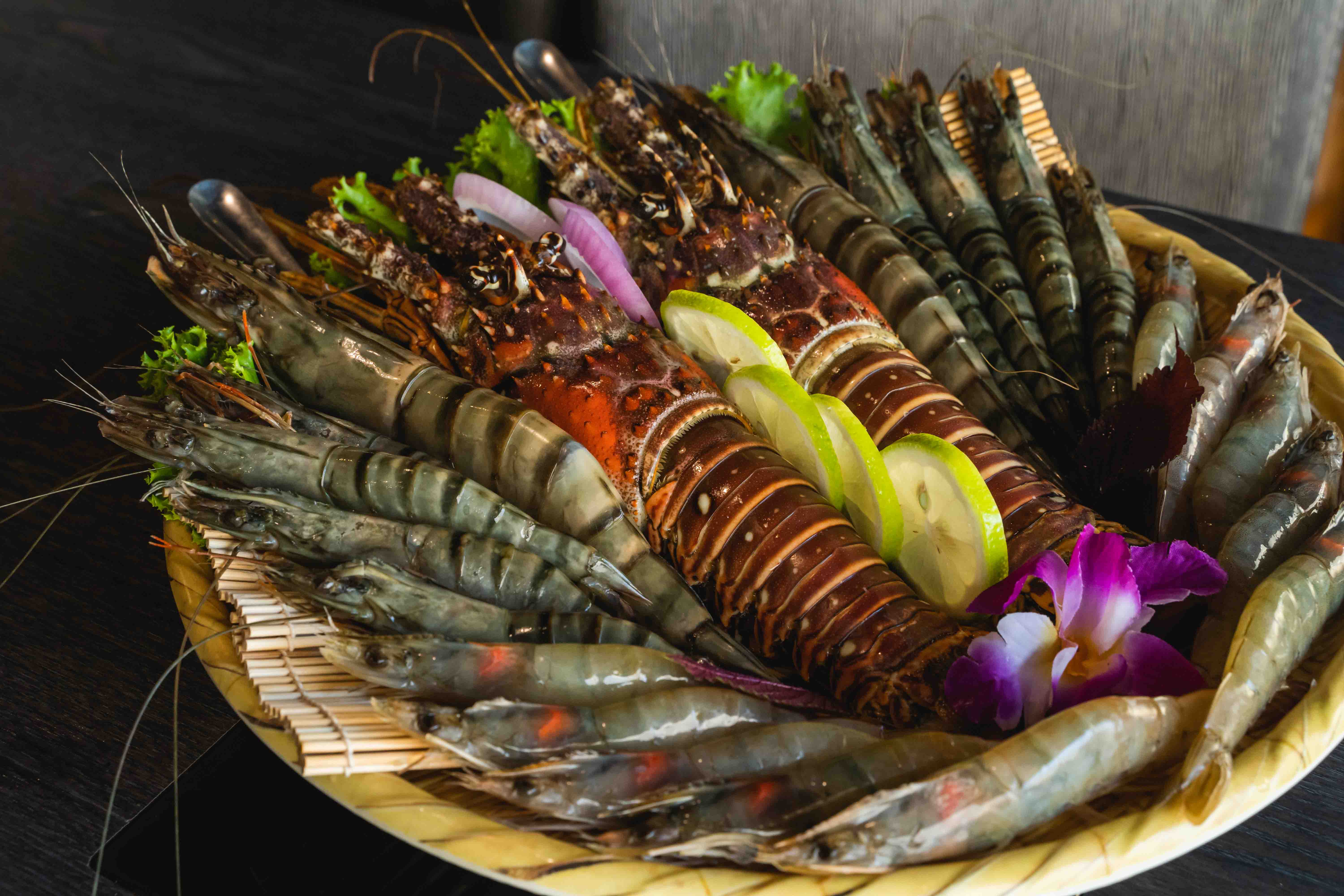 妞編輯首推「四人豪華龍蝦套餐」,除了配有湯底、菜盤、附餐外,還可從20盎司的培根牛、雪花牛、五花豬、梅花豬、特選羊、雪花羊、雙倍去骨雞腿、鮮魚片或三鮮拼盤(生蠔、口湖文蛤、花枝漿)中5選2。