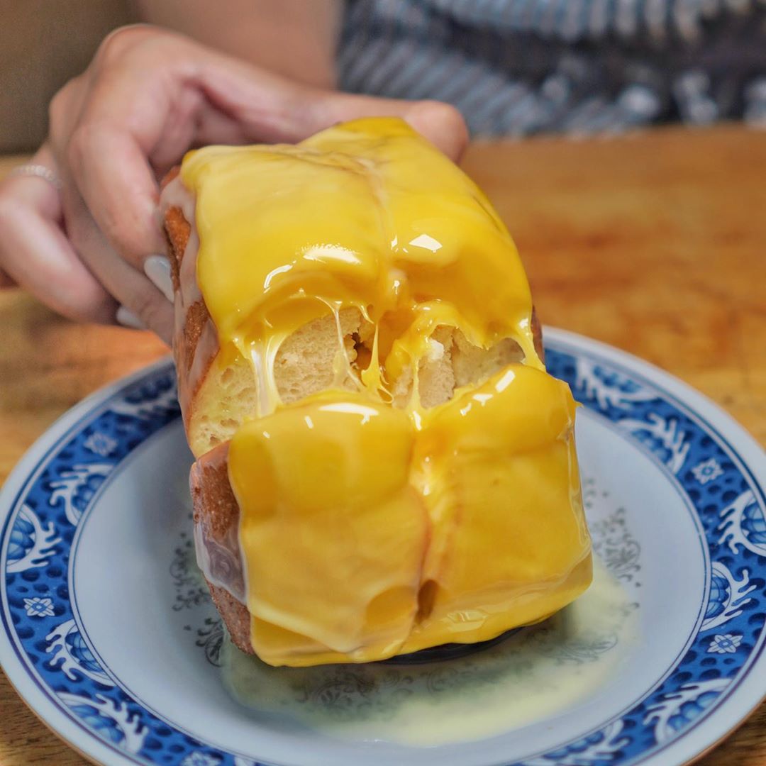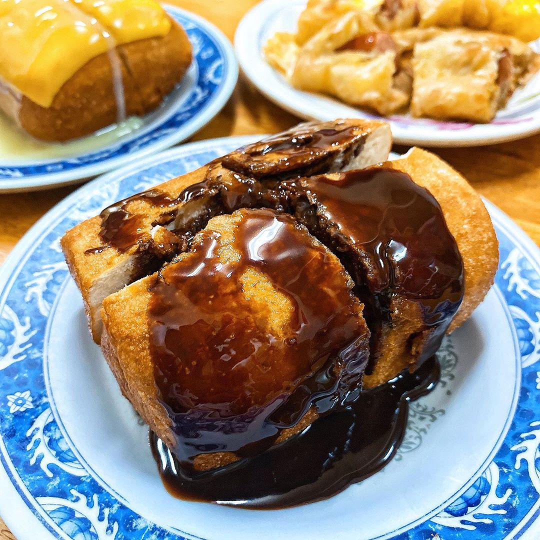 饅頭外觀炸得金黃誘人,上層有著起司片與煉乳,一口咬下可以感受到外皮卡滋卡滋的香酥,濃郁起司與煉乳的甜交融入口,雖然是用炸的但吃起來卻意外地沒有油膩感,不知不覺就自己嗑掉一份。(超!萬!惡!)除了起司口味之外,也有抹茶煉乳、焦糖煉乳、巧克力煉乳等七種口味,如果沒來過這家店就真的枉費來雲林啦!