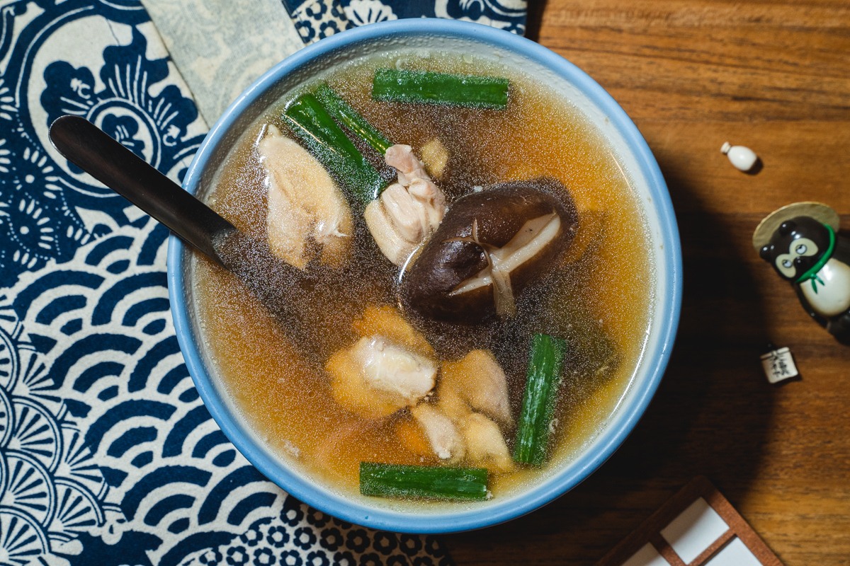 而妞編輯也要私心推薦滋補暖胃的「剝皮辣椒雞湯」,常吃居酒屋的妞妞們應該也會有個習慣,在點了一桌好菜之後,總想來一碗湯做一個完美收尾,不僅可以緩和剛喝完酒的酒精後勁,回家也能比較好入眠!(笑)這家居酒屋將雞肉與剝皮辣椒一同熬煮,肉質緊實多汁、湯頭甘美鮮甜,一口烤串一口湯簡直人間天堂!